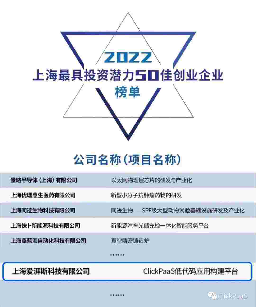 CGPAY钱包 作为国内低代码PaaS平台的领军企业,,与120家创企入围角逐。。。期间接受了来自德同资本、、领中资本等知名投资机构的10位投资人组成专家评委团的背靠背盲选。。。并最终入围“2022上海最具投资潜力50佳创业企业”榜单,,,,被列入“上海市重点培育创业企业库”。。